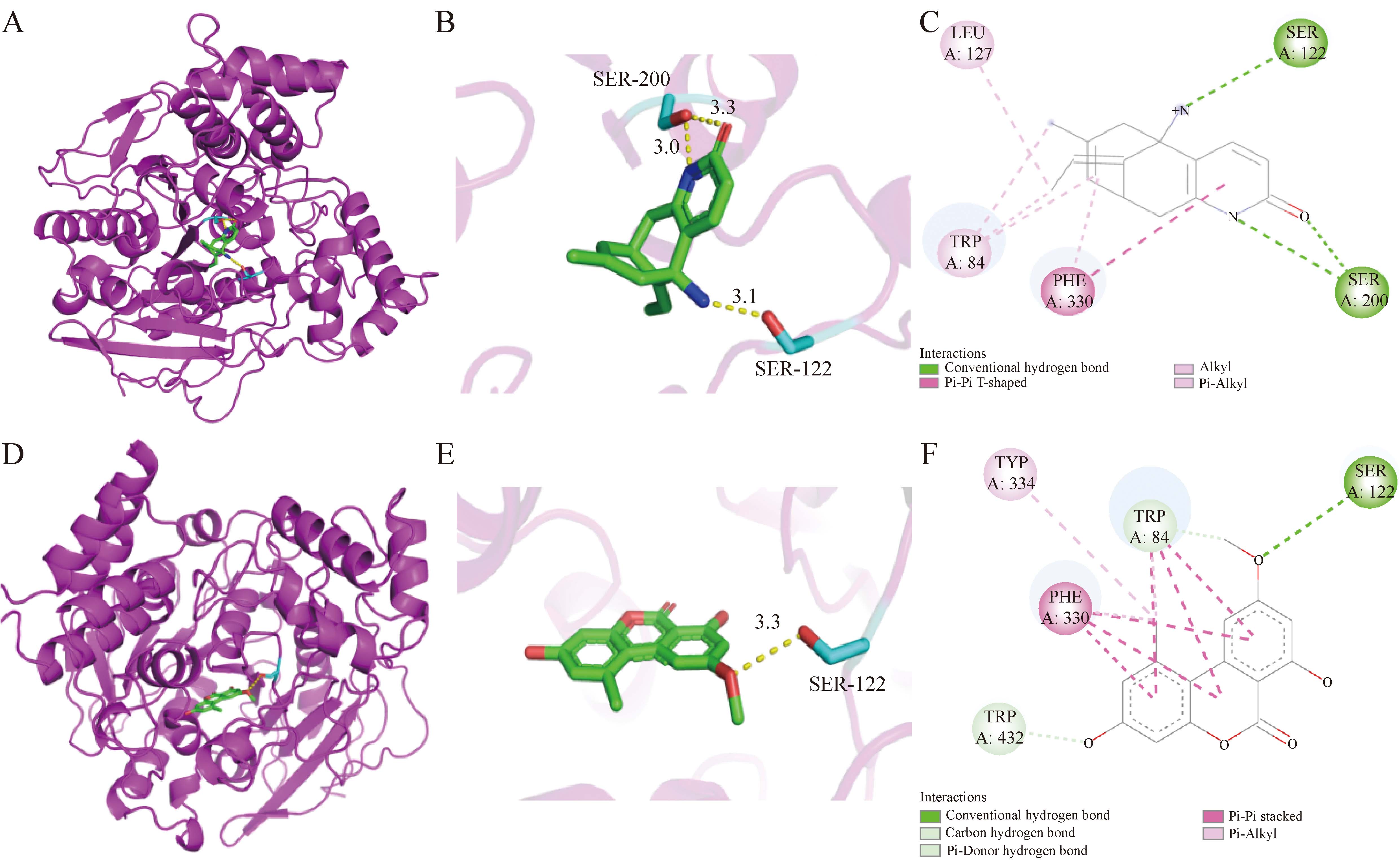 本文主要探究蛇足石杉内生真菌Alternaria alternata FL7大米发酵产物中的乙酰胆碱酯酶(AChE)抑制活性成分。采用硅胶柱层析、制备型高效液相色谱、核磁共振波谱和高分辨质谱技术对其成分进行化合物的分离与鉴定,共鉴定单体化合物19个,包括甘露醇(1)、尿嘧啶(2)、链格孢酚单甲醚(3)、啤酒甾醇(4)、methyl 5-acetamidopentanoate (5)、cyclo(L-Pro-L-Pro) (6)、β-sitosterol (7)、黄嘌呤(8)、2(3H)-benzothiazolethione (9)、邻苯二酚(10)、1-methyl-β-D-glucopyranoside (11)、cycol (L-Pro-L-Tyr) (12)、cycol (L-Pro-L-Val) (13)、alteamide (14)、(4S,5S)-5-[(S)-sec-butyl]-4- hydroxypyrrolidin-2-one (15)、allahabadolactones A (16)、邻苯二甲酸二辛酯(17)、methyl 4-acetamidobutanoate (18)和2-phenylethyl α-D-glucopyranoside (19)。通过改良后的Ellman法测定,化合物3具有中等AChE抑制活性,IC50值为(15.8±0.13) µmol/L,分子对接模拟显示AChE 122位的丝氨酸可能为其结合靶点。此外,化合物5、15和18作为天然产物首次报道,对化合物14的结构进行了修正。该研究可为蛇足石杉内生菌来源代谢产物的开发和利用提供参考。