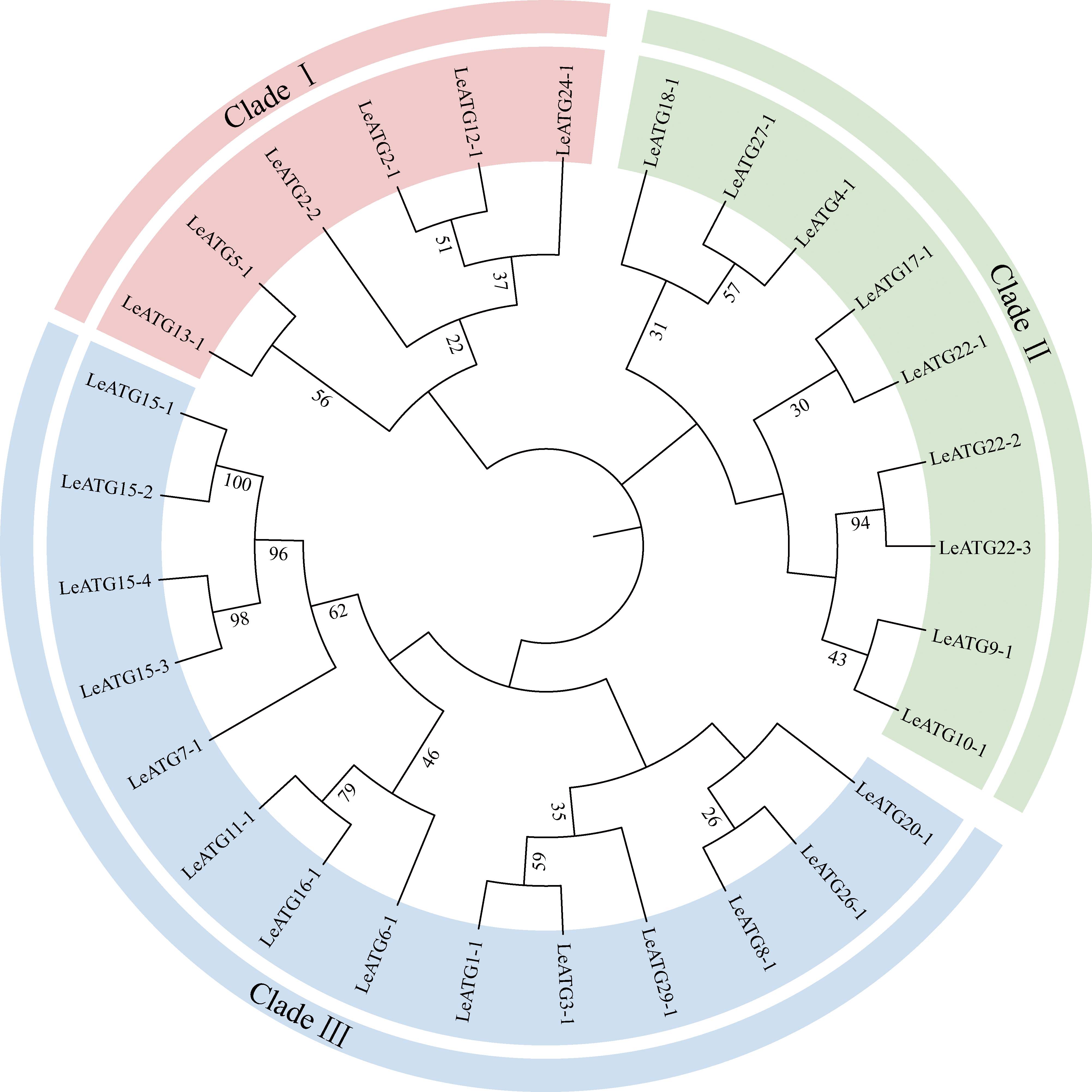 为解析香菇Lentinula edodes自噬相关基因(autophagy-related gene, ATG)家族成员在菌丝转色过程中的功能,本研究基于香菇全基因组数据,采用同源比对的方法筛选LeATG家族成员,并对其进行生物信息学分析。同时,结合转录组测序数据和RT-qPCR,分析了该家族成员在菌丝转色过程中的表达模式。结果表明,在香菇全基因组中共鉴定出29个LeATG家族成员,属于23类自噬相关基因。染色体定位分析显示,其主要分布于4号和1号染色体,9号染色体中未发现分布。LeATG家族成员基因全长在595-6 772 bp之间,LeATG基因编码蛋白序列长度介于127-1 998 aa,蛋白相对分子量为14.8-219.7 kDa,理论等电点为4.27-9.51,除LeATG9、LeATG22和LeATG27外,其余24个LeATG蛋白均不含跨膜结构。进化分析结果显示29个LeATG蛋白聚类为3个进化分支,同一类LeATG蛋白分散于不同亚支,说明蛋白结构可能存在显著差异。转录组数据和RT-qPCR分析结果表明不同LeATG基因在菌丝转色前后的差异表达模式,其中2个LeATG基因在转色前高表达,5个在转色后高表达,推测以上7个基因可能参与调控菌丝的转色过程。本研究系统鉴定了香菇LeATG基因家族,初步揭示了该家族成员在菌丝转色过程中的表达调控模式,为深入解析LeATG基因在香菇转色过程中的分子机制奠定了重要基础。