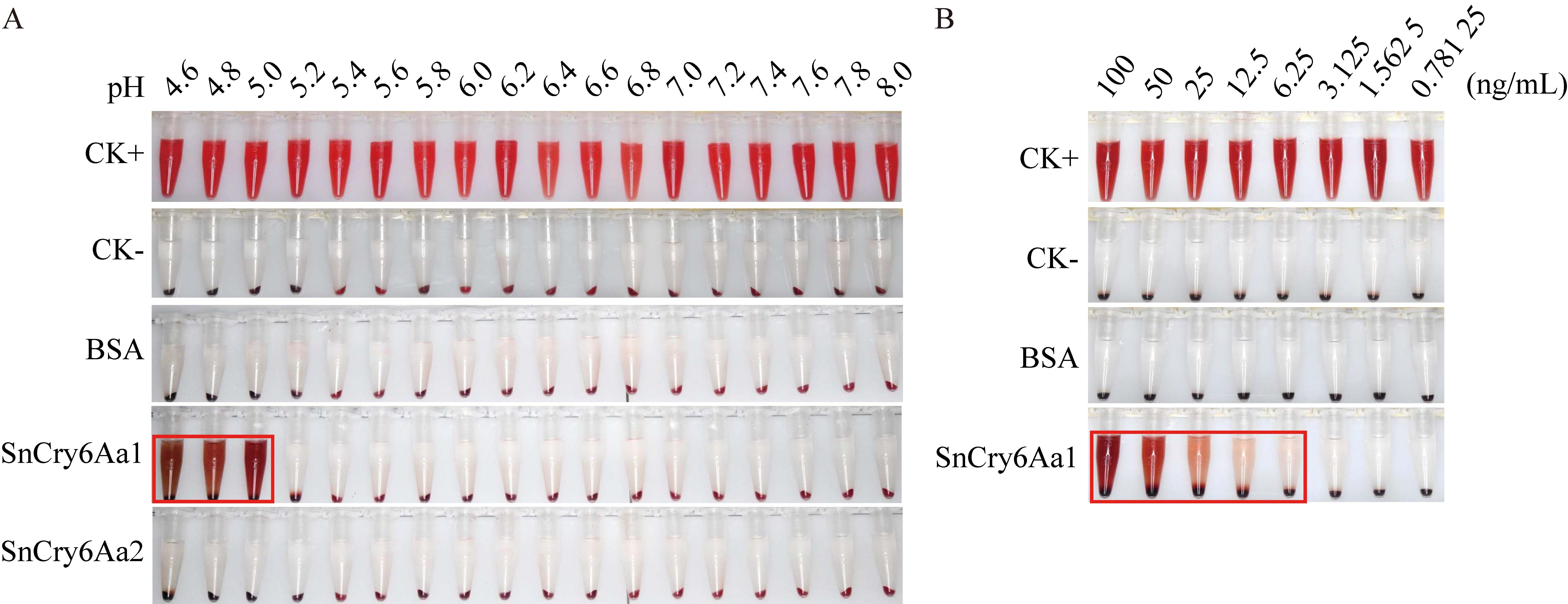 真菌中存在类成孔毒素,但其功能研究鲜有报道。本研究在分析菌核菌丝差异表达基因时发现,类成孔毒素基因在雪腐核盘菌菌核中高丰度表达;通过质谱鉴定菌核可溶性蛋白时进一步明确,类成孔毒素蛋白在菌核中高丰度存在。序列及结构分析表明,雪腐核盘菌SnTB1编码3种类成孔毒素蛋白SnCry6Aa1、SnCry6Aa2和SnCry6Aa3,三者均包含ClyA_Cry6Aa-like成孔毒素保守结构域,具有α-螺旋成孔毒素典型的空间结构。利用原核系统表达纯化获得了可溶性SnCry6Aa1和SnCry6Aa2,并对其红细胞裂解活性及线虫和昆虫毒力进行分析。结果显示:6.25 ng/mL以上的SnCry6Aa1在酸性环境中表现出显著的溶血活性,而SnCry6Aa2则未检测到类似活性;SnCry6Aa1和SnCry6Aa2对秀丽隐杆线虫、棉铃虫、斜纹夜蛾、梨小食心虫及韭菜迟眼蕈蚊幼虫均未表现出明显毒性,但对异型眼蕈蚊幼虫表现出一定的杀虫活性,校正死亡率分别为14%和17%。本研究首次发现ClyA_Cry6Aa-like成孔毒素在核盘菌菌核高丰度存在,并对其生物活性进行了初步探索,为相关蛋白的深入研究及利用奠定了基础。