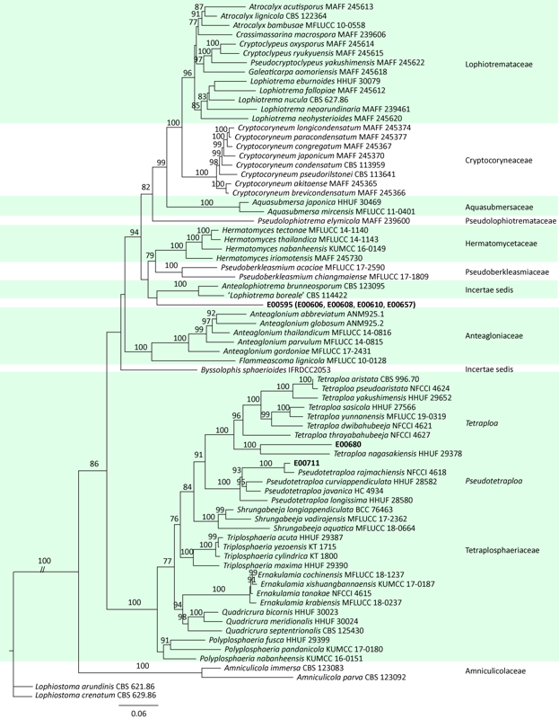| Fig. 1 Multi-loci phylogenetic tree of Tetraplosphaeriaceae and related fungi based on ITS, LSU, rpb2, tef1, tub2, analysed by maximum likelihood (ML). |