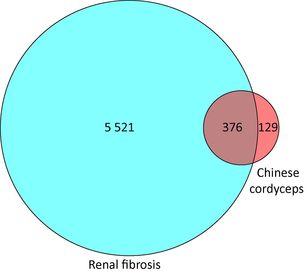 | Fig. 1 The Venn diagram of Chinese cordyceps and renal fibrosis targets. |