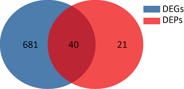 | Fig. 5 Venn diagram of differentially expressed genes and proteins. DEGs: Differentially expressed genes; DEPs: Differentially expressed protein. |