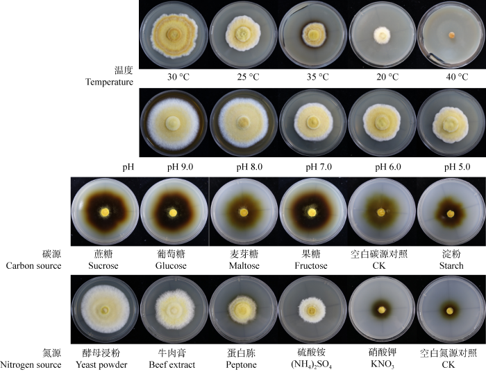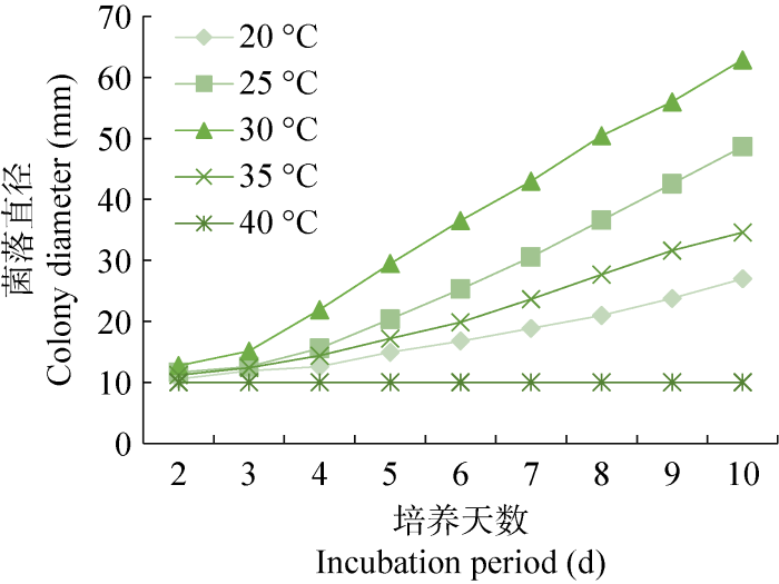 接种于加富PDA培养基后,在20、25、30、35和40 ℃的恒温培养箱中黑暗培养。