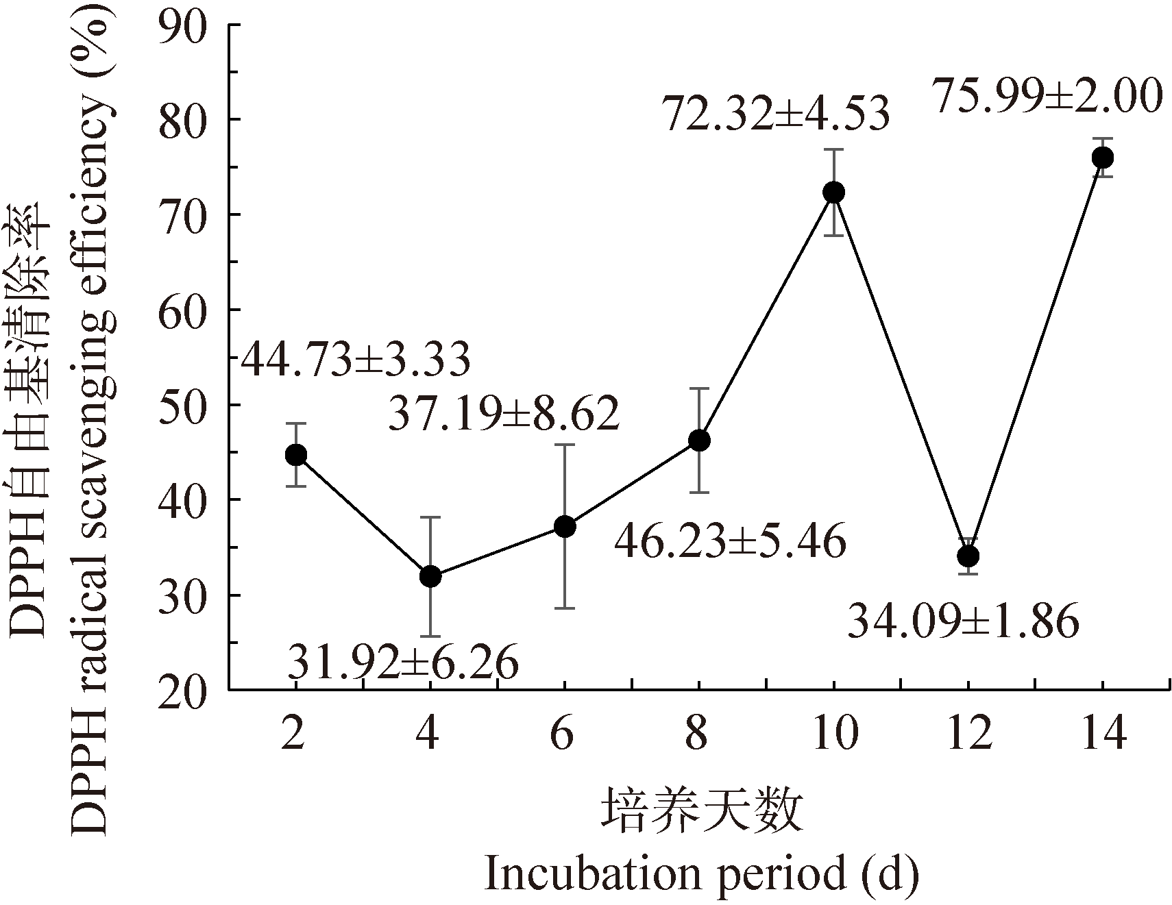 | 图10 粗毛纤孔菌液体培养过程中DPPH自由基清除率的变化 |