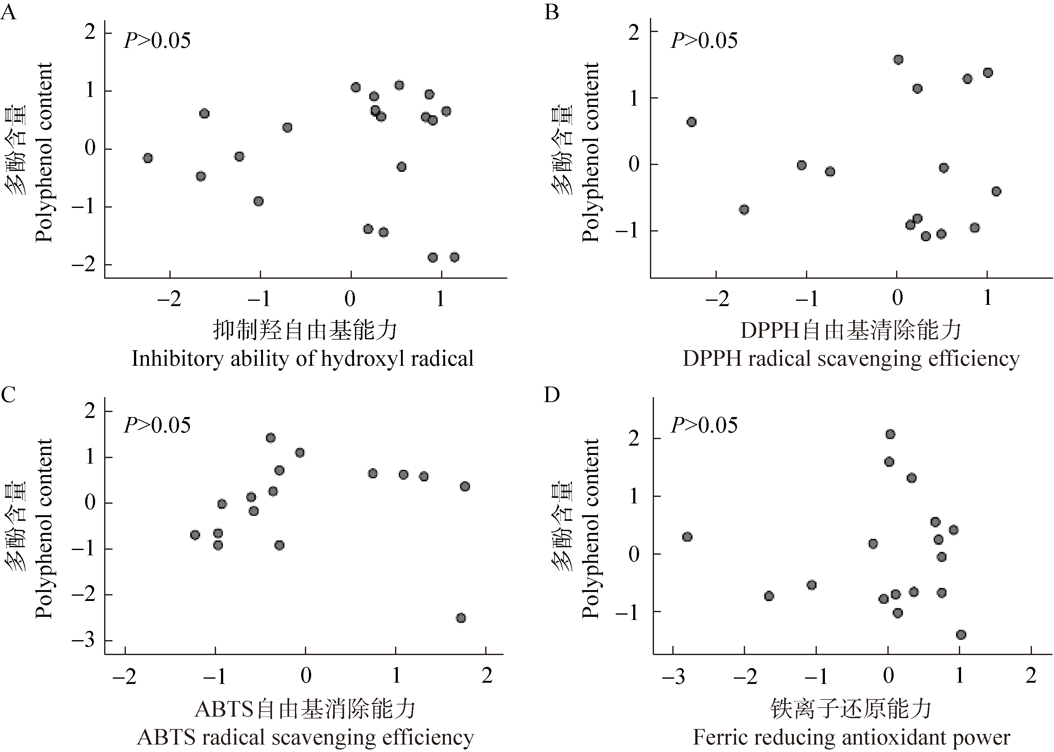 | 图13 粗毛纤孔菌多酚含量和抗氧化能力相关性分析 |