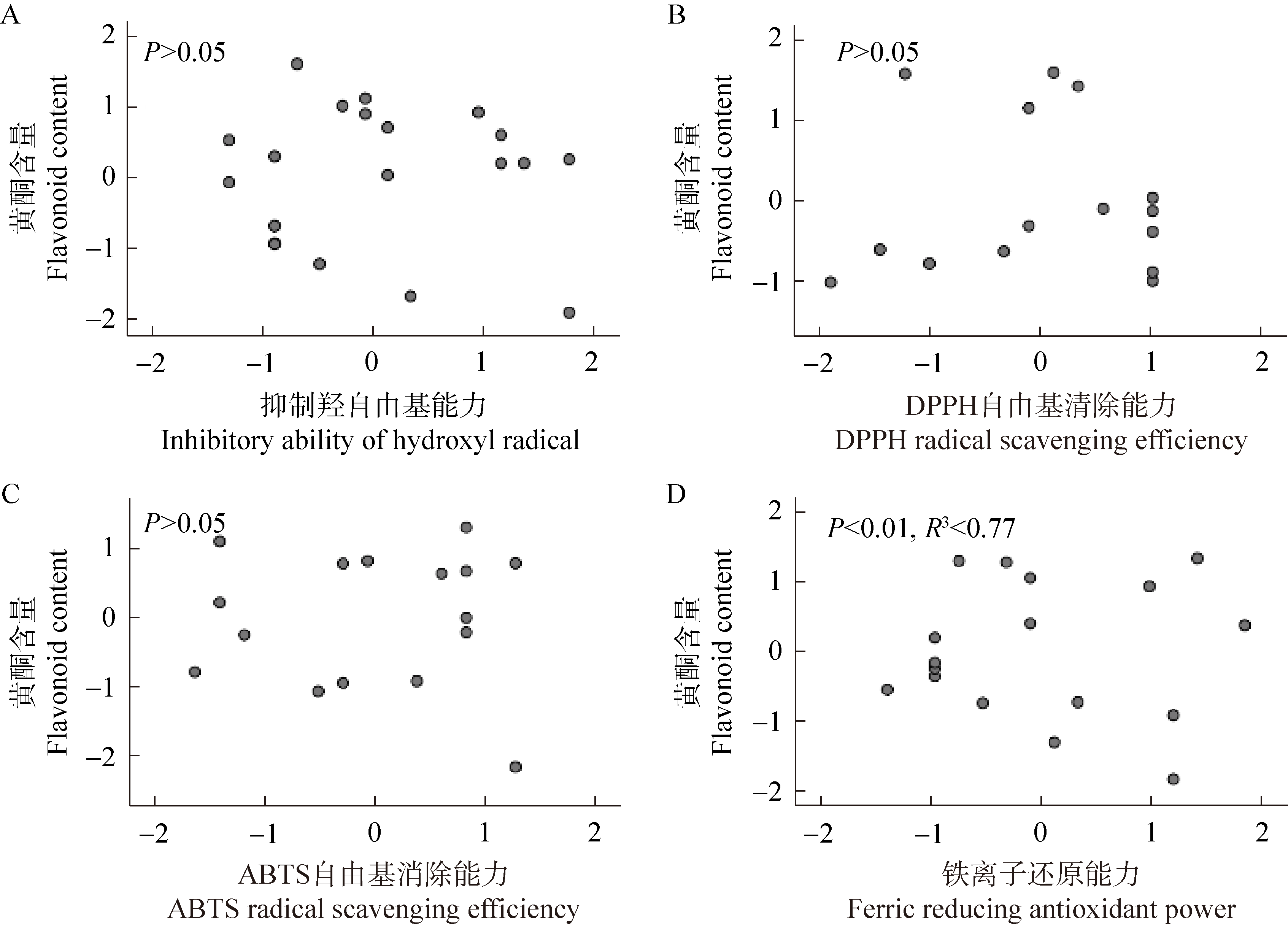 | 图14 粗毛纤孔菌黄酮含量和抗氧化能力相关性分析 |