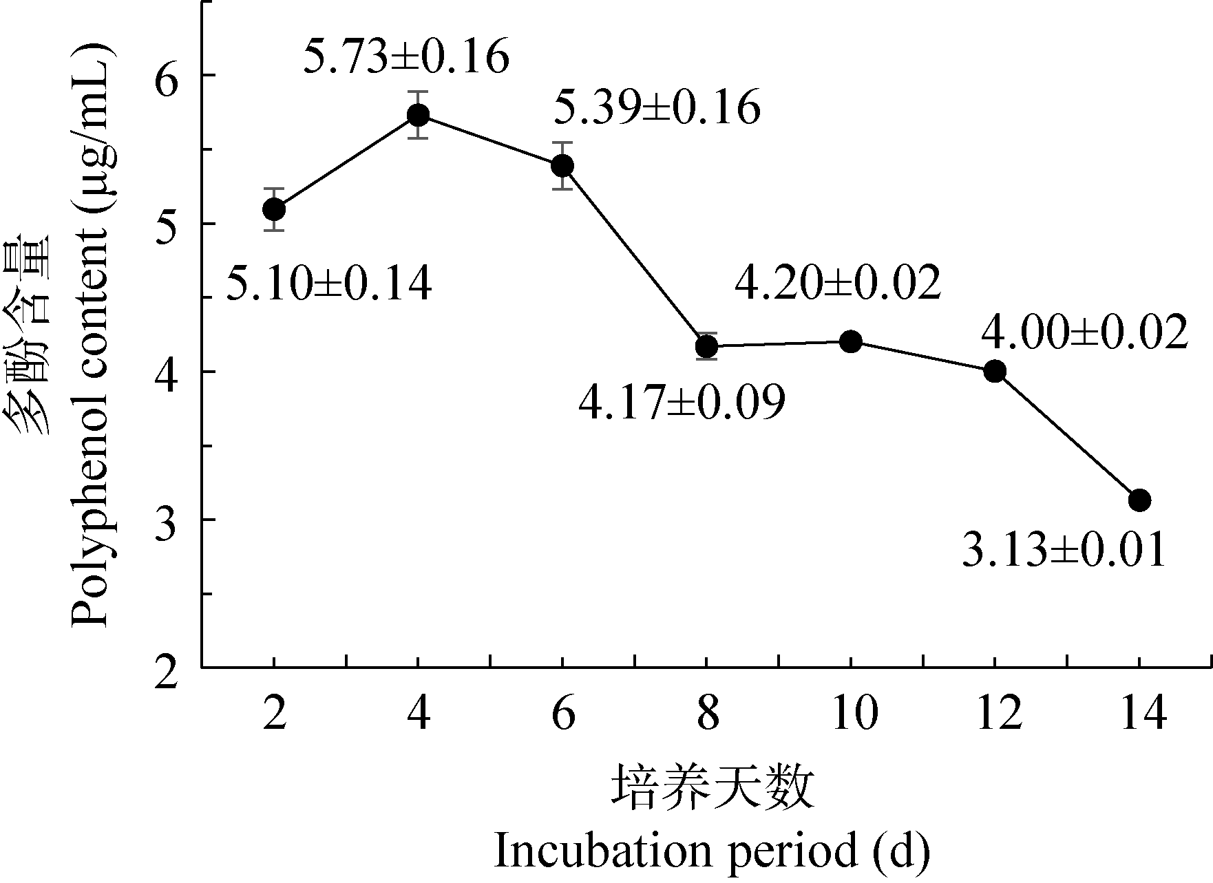| 图7 粗毛纤孔菌液体培养过程中多酚含量的变化 |