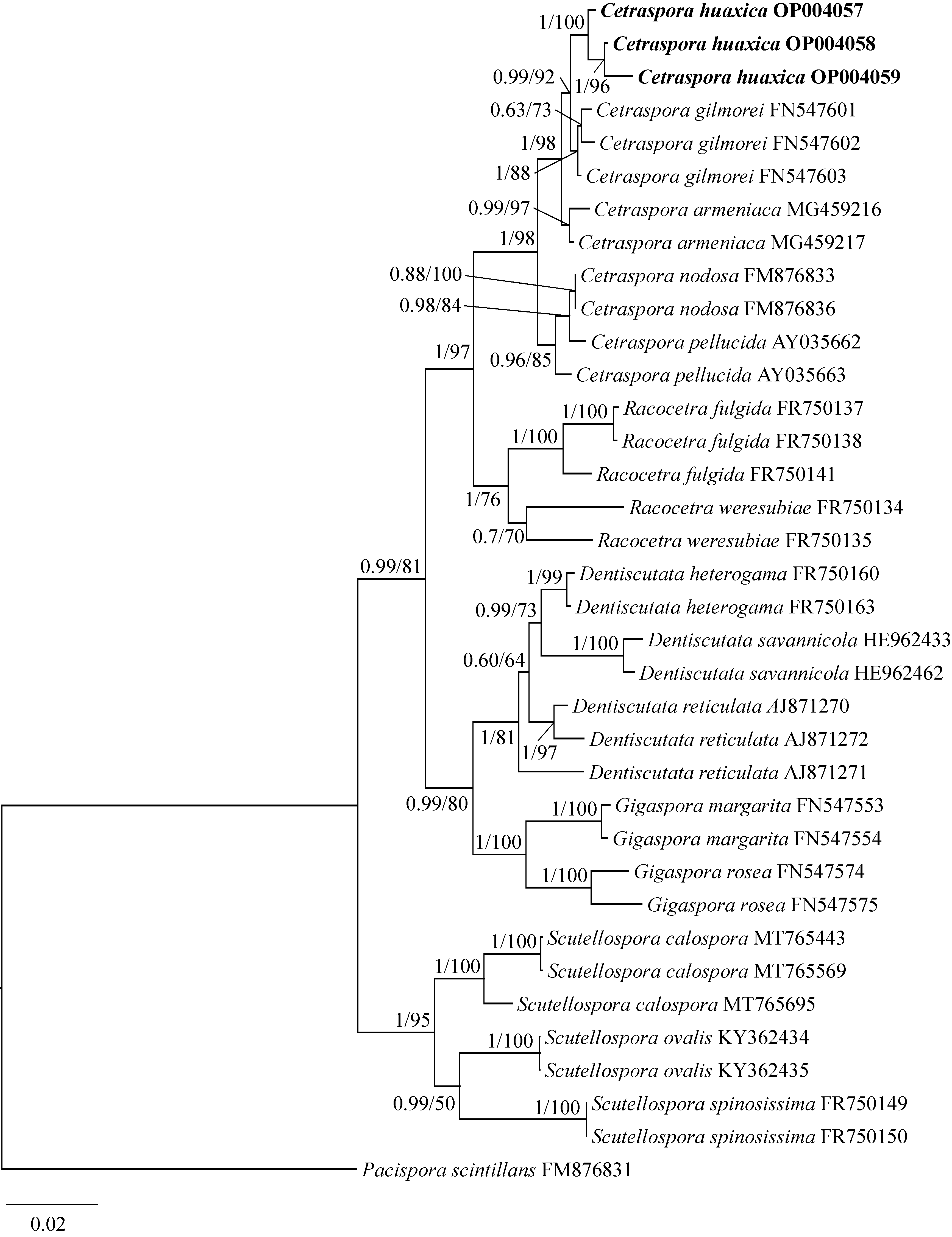 Cetraspora huaxica, a new species of arbuscular mycorrhizal fungi (Glomeromycotina) from Guiyang, China |